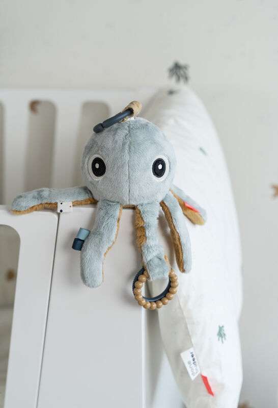 You can attach Jelly to a pram, car seat, playpen or activity gym using toy links.