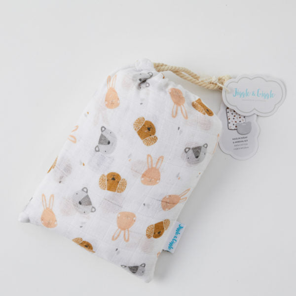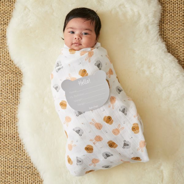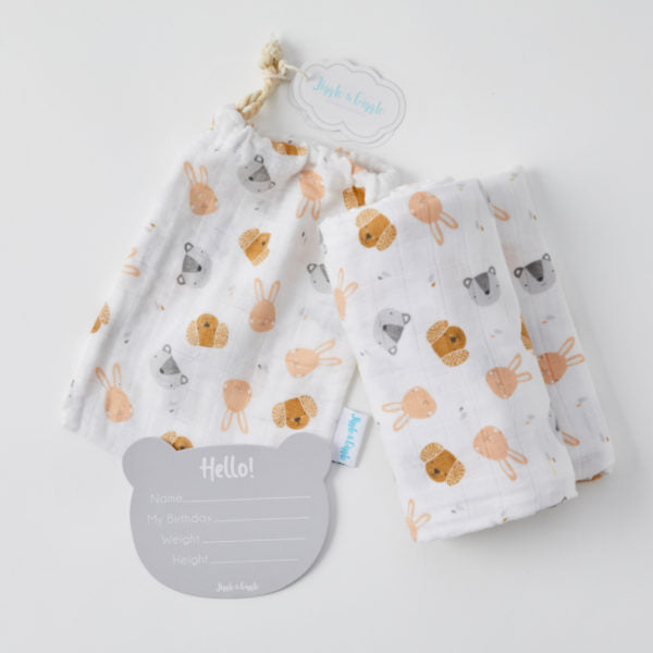 Large, ultra-soft Muslin Wrap with a unique Arrival Card to announce to the world that baby has arrived!