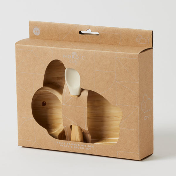 With its adorable bunny design, little ones will love the Belle Bamboo Divider Plate and Spoon Set!