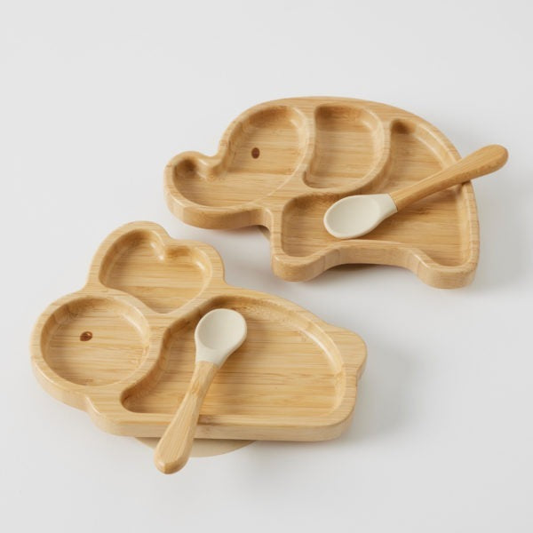 Bamboo Plate with Suction Base and Gentle Silicone Spoon