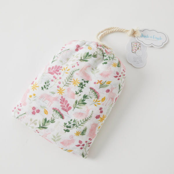 1 x Muslin Wrap, 1 x Arrival Card, 1 x Self Fabric Bag |