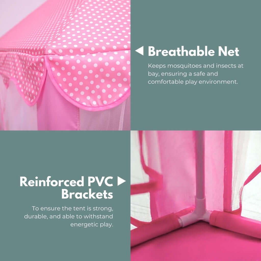 - Protective and Breathable Design: Enclosed with a fine, breathable net that keeps mosquitoes and insects at bay, ensuring a safe and comfortable play environment.