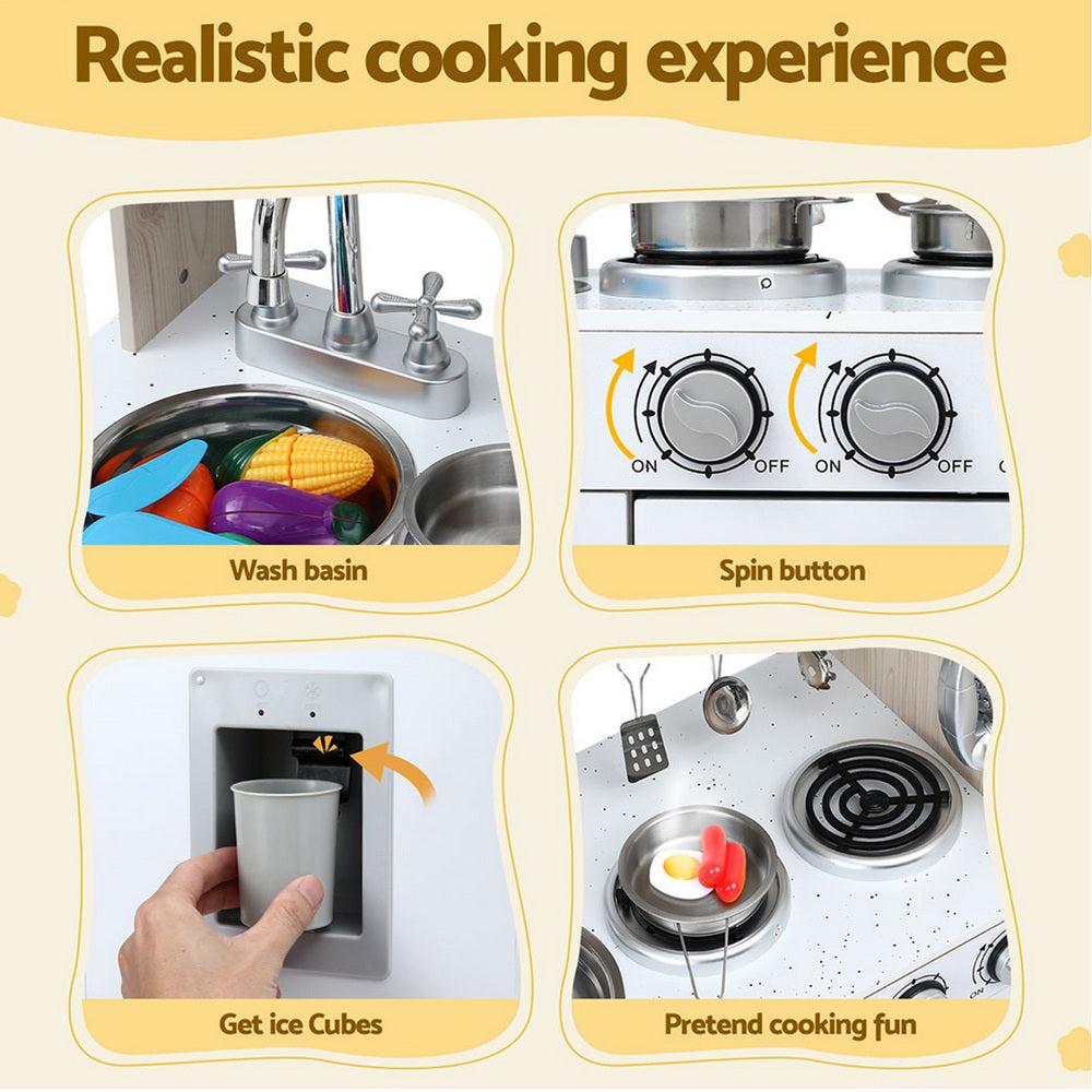 Kids Wooden Kitchen Play Set - White & Beige