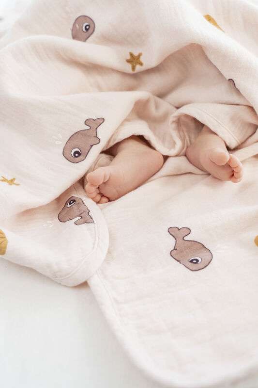 Wrapping your baby in Lalee’s large swaddle from Denmark
