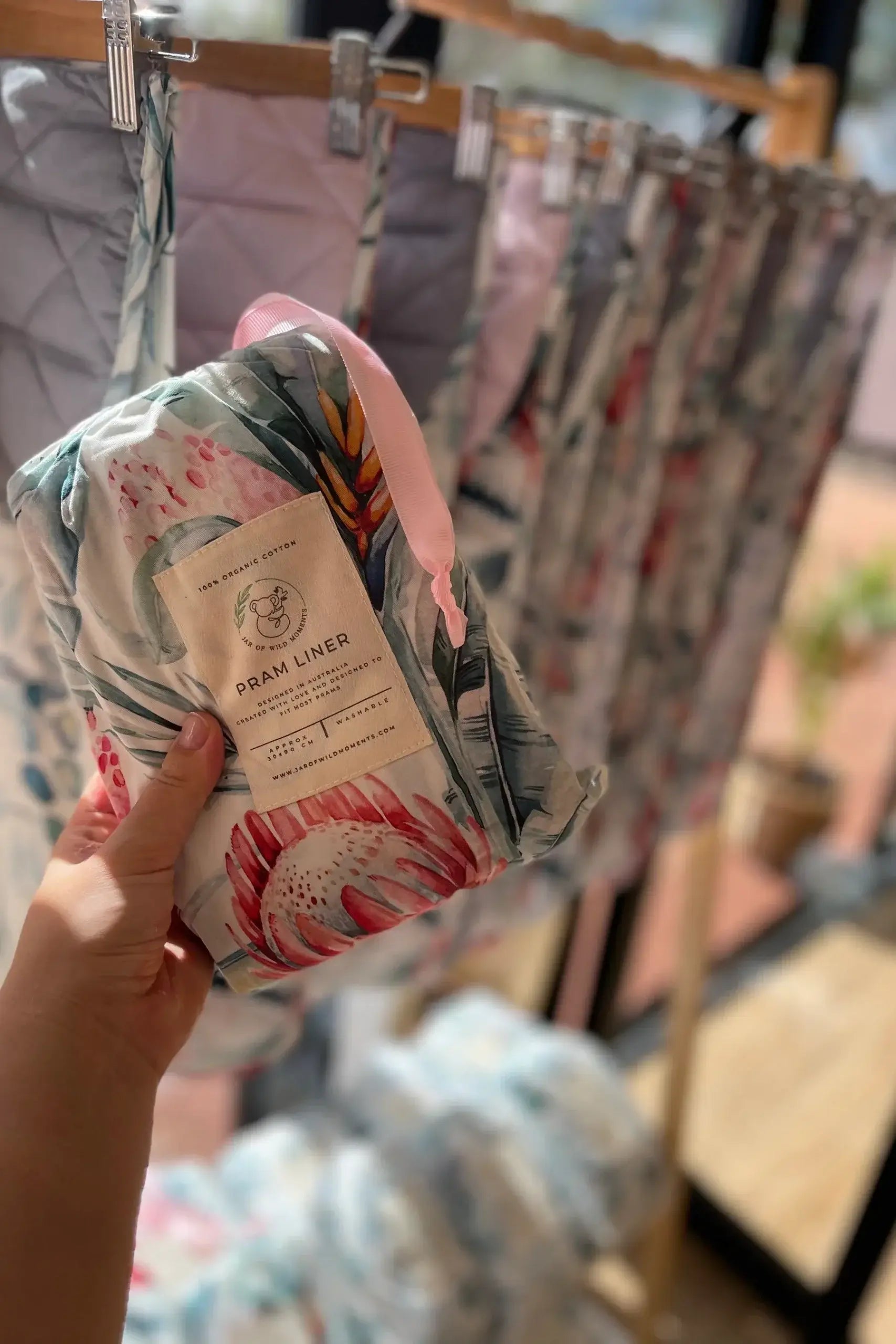 Made with the premium organic cotton fabric, and made in Australia. This pram liner and the matching Playmat are a perfect gift for both mum and baby.
