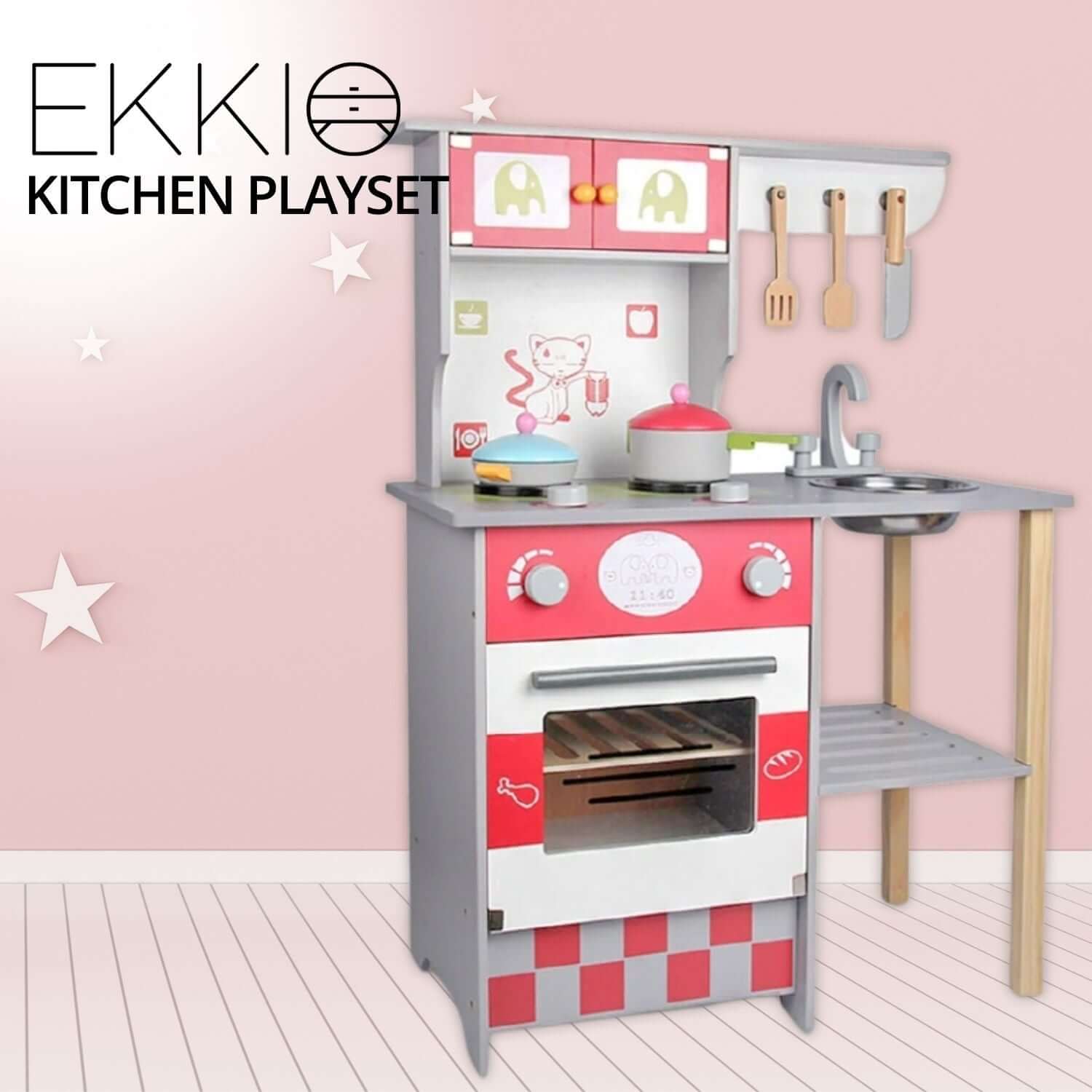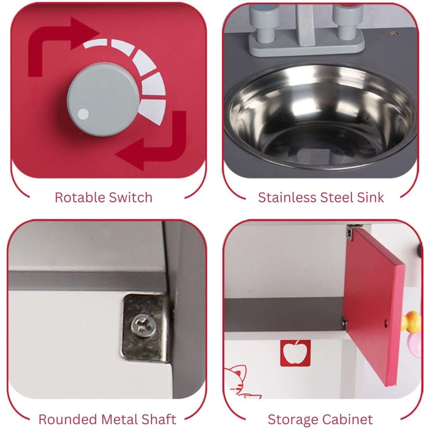 Wooden Kitchen Playset - Red - European Style Kitchen